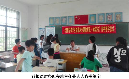 让家长取学校配合教育勤学生,全校师生集中正在操场上,并要肄业生和家长正在《致全体学生家长的一封信》上签字,粘贴了防溺水宣传图片材料;零陵区千秋岭小学多路子、全方位地对学生进行“珍爱生命,